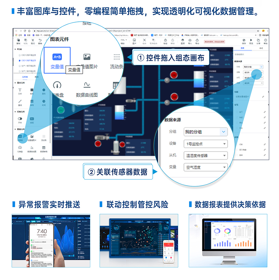支持預置ModbusRTU輪詢指令,邊緣計算后自定義JSON模板主動上報