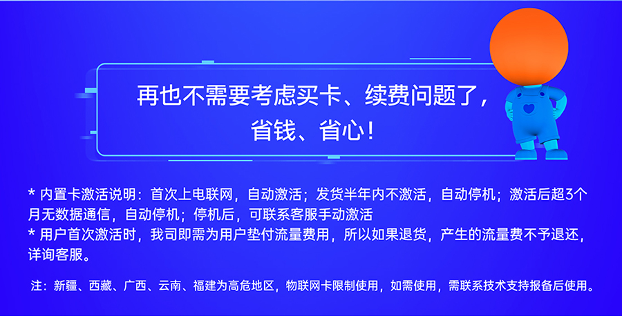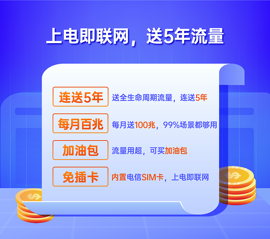 卡2:內置電信貼片eSIM卡,出廠即送5年流量,100M/月